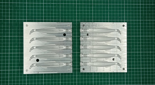 Five cavity CNC machined aluminum mold for 4.5" twitching shad lure production